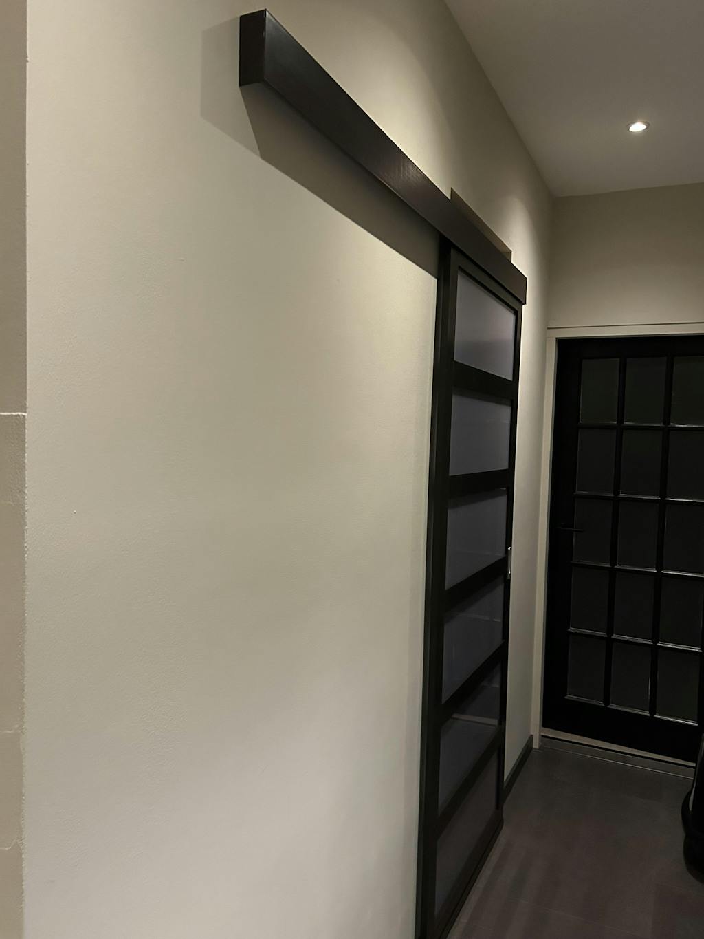 Dankzij het Balci schuifdeursysteem wordt de deur soepel door de muur geduwd en getrokken, wat ruimte bespaart ten opzichte van traditionele deuren. De donkere houtlook geeft een chique uitstraling en past prachtig tussen de keuken en eetkamer, de woonkamer en kantoor, of als stijlvolle afscheiding in de badkamer.